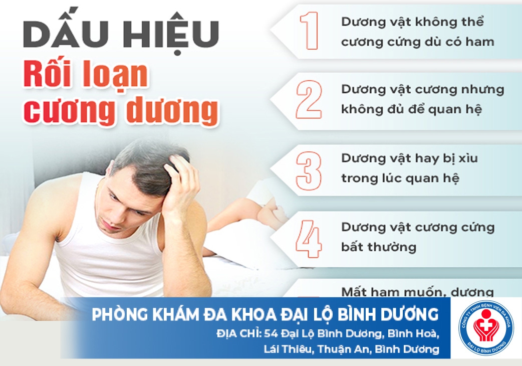 Để khắc phục bệnh rối loạn cương dương thì các quý ông nên tìm đến những cơ sở y tế chuyên khoa chất lượng như Phòng Khám Đa Khoa Đại Lộ Bình Dương. Tại đây, sau khi bác sĩ thực hiện các thăm khám, xét nghiệm kiểm tra tình trạng bệnh cụ thể, dựa trên từng mức độ nặng nhẹ mà sẽ có những chỉ định điều trị phù hợp, đạt kết quả tốt.