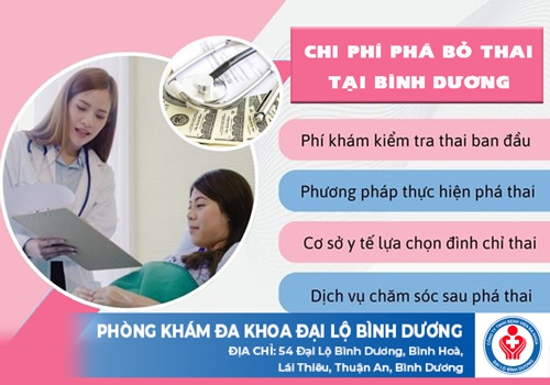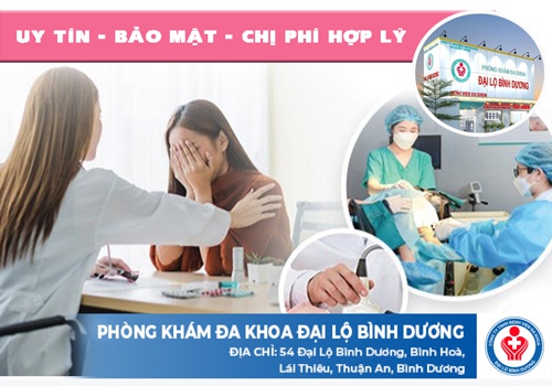 Tại Bình Dương hoặc các vùng lân cận, chị em lỡ mang thai ngoài ý muốn cần được hỗ trợ phá bỏ thai an toàn với mức phí phải chăng thì có thể an tâm chọn Phòng Khám Đa Khoa Đại Lộ Bình Dương ở 54 Đại lộ Bình Dương, Bình Hòa, Lái Thiêu, Thuận An, Bình Dương. Đây là đơn vị y tế hợp pháp, chuyên thực hiện khám, siêu âm, đình chỉ thai an toàn được đông đảo chị em tin chọn mỗi khi có nhu cầu chăm sóc sức khỏe sinh sản.
