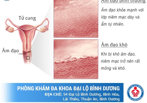 Khô âm đạo là tình trạng âm đạo tiết không đủ chất nhờn để bôi trơn vùng kín khiến cho việc quan hệ bị cản trở, đau rát và ngứa. Khô âm đạo làm giảm khoái cảm hoặc không có khoái cảm trong chuyện tình dục. Đối tượng thường gặp tình trạng này là những chị em bị suy giảm nội tiết tốt. Lúc này vùng kín sẽ bị khô rát, sưng đỏ, ngứa ngáy kèm theo viêm nhiễm. Tình trạng nếu kéo dài có thể gây ngứa rát vùng kín kể cả khi không quan hệ.