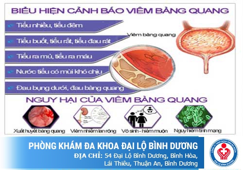 Hiện nay, tại Bình Dương, Phòng Khám Đa Khoa Đại Lộ Bình Dương với chuyên khoa Thận - Niệu với bề dày hơn 10 năm hoạt động, được xem là địa chỉ y tế uy tín trong việc điều trị viêm bàng quang ở nữ giới, được sự tin tưởng của đông đảo chị em trong và ngoài khu vực tìm đến như một lựa chọn đúng đắn nhất. Cụ thể: