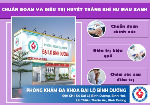 Tại khu vực Bình Dương, chị em có thể an tâm lựa chọn chuyên khoa phụ khoa của Phòng Khám Đa Khoa Đại Lộ Bình Dương tọa lạc 54 Đại lộ Bình Dương, Bình Hòa, Lái Thiêu, Thuận An, Bình Dương để được hỗ trợ khám chữa khắc phục khí hư màu xanh hiệu quả, an toàn dưới điều kiện môi trường y tế đạt chuẩn.