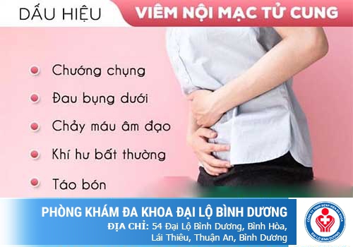 ➢ Chướng bụng: Đi kèm các dấu hiệu như đau bụng dưới dịch âm đạo thay đổi về chất và mùi, đôi khi kèm máu... đó là khi viêm nội mạc tử cung xảy ra đồng thời với bệnh viêm tiểu khung, do lao, nhiễm khuẩn chlamydia…