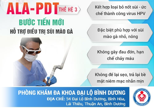 Áp dụng kỹ thuật ALA – PDT thế hệ mới, dùng tia quang học cao tần tác động trực tiếp lên vùng bệnh, khống chế virus HPV hiệu quả, triệt tiêu và làm nốt sùi tự rụng mà không hề gây đau đớn. Đồng thời nâng cao hệ miễn dịch, phòng tránh nguy cơ tái lặp lại bệnh.