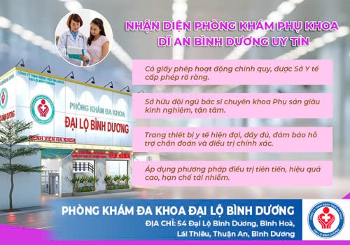 ☞ Để an tâm hơn, chị em nên chủ động lựa chọn các phòng khám lớn, được cấp phép chính thức như Phòng Khám Đa Khoa Đại Lộ Bình Dương. Đây là cơ sở y tế được đánh giá cao, hội tụ đội ngũ bác sĩ giỏi, trang thiết bị hiện đại, quy trình điều trị khoa học cùng mức chi phí hợp lý, dịch vụ tốt… sẽ mang đến chất lượng cao trong thăm khám và điều trị.