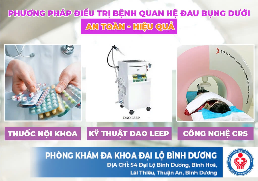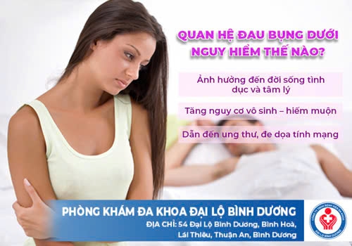 Nguyên tắc để khắc phục quan hệ đau bụng dưới là cần nắm rõ nguyên nhân, mức độ tổn thương cụ thể mới có hướng điều trị phù hợp. Do đó, nếu đang trong tình trạng này chị em nên tìm đến những địa chỉ y tế chất lượng như Phòng Khám Đa Khoa Đại Lộ Bình Dương ở 54 Đại lộ Bình Dương, Bình Hòa, Lái Thiêu, Thuận An, Bình Dương để được thăm khám, kiểm tra và điều trị hiệu quả.