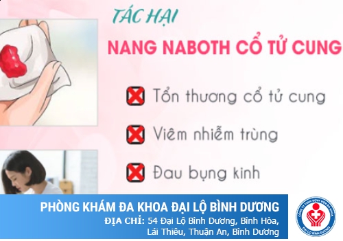 ➢ Gây nên tổn thương ở cổ tử cung: Khi các khối nang naboth cổ tử cung phát triển lớn có thể gây biến dạng cổ tử cung, sai lệch về hình dáng và kích thước. Nếu các nang này phát triển lớn có thể nứt vỡ, gây viêm loét nghiêm trọng ở cổ tử cung gây viêm nhiễm cổ tử cung. Ảnh hưởng đến đời sống tình dục và sức khỏe sinh sản của chị em.