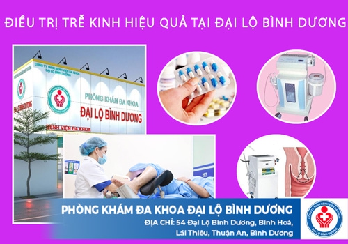 ت Chọn Phòng Khám Đa Khoa Đại Lộ Bình Dương để khám chữa trễ kinh nói riêng, các bệnh phụ khoa nói chung chị em sẽ được an tâm xuyên suốt quá trình bởi đây là cơ sở được Sở Y tế cấp phép hợp pháp. Sở hữu đội ngũ bác sĩ chuyên khoa ưu tú, giàu kinh nghiệm trong lĩnh vực chăm sóc sức khỏe phụ nữ. Đặc biệt nổi bật trong đó là bác sĩ sản phụ khoa ưu tú với năng lực chuyên môn cao, có bề dày kinh nghiệm trên 20 năm sẽ đưa ra những chuẩn đoán chính xác, điều trị hiệu quả, không để sai sót.